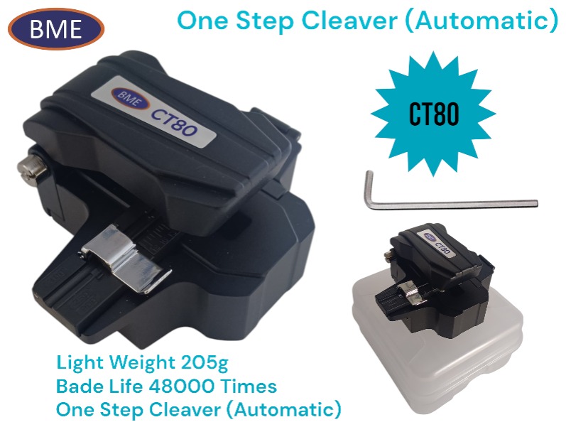 The BME CT80 is an automatic optical fiber one Step The BME CT80 enhances installation efficiency by providing precise cleaving for single fibers, making it a top choice for field-installable connectors and mechanical splices. Its automated features streamline optical fiber installations, ensuring accuracy and reliability in cable maintenance tasks. The device’s advanced technology and design cater to high-precision requirements, setting a new standard in the industry. cleaver designed for high-precision fiber optic cable installations and maintenance. It is particularly suitable for cleaving single fibers, making it ideal for the installation of field-installable connectors and mechanical splices.